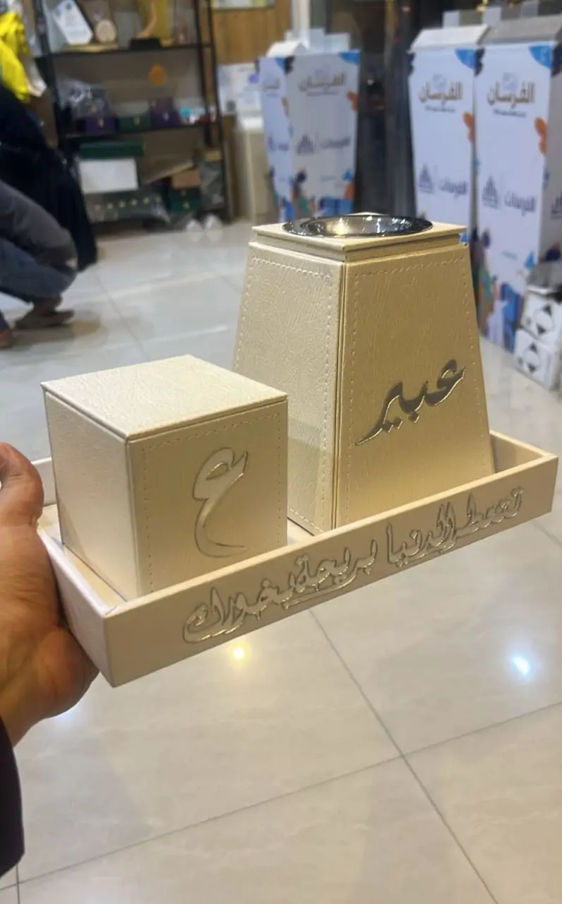 مباخر جلدية مزينة بالاسم أو الحرف – حسب الطلب